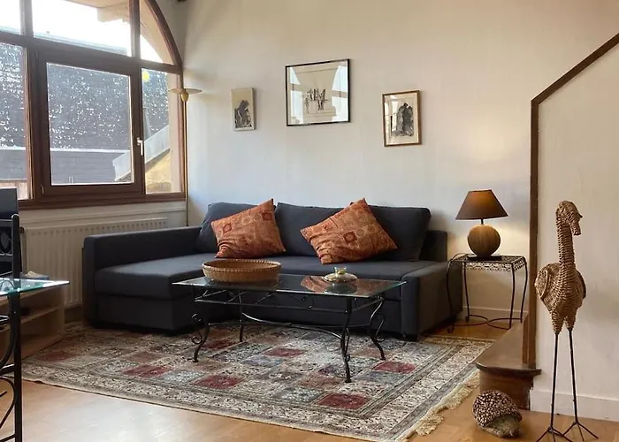 Appartement Duplex De Charmeアパ-トメントには,器具でいっぱいの台所,コ-ヒ-/紅茶メ-カ-,高速インタ-ネット とテレビ付きの客室があります. このアパ-トメントは,ヴェルドレル広場から車で約5分に位置しています.